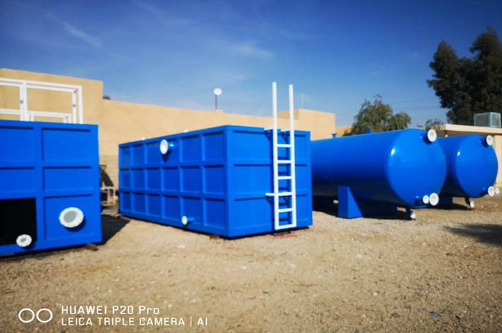 4- تجهيز وحدة معالجة ماء جديدة سعة 200 م 3 / ساعة يشمل أحواض الترسيب وحوض المزج والمرشحات الرملية الأفقية مع المضخات ودافعات الهواء ووحدة الكلور وكافة المنظومات التي تضمن عمل الوحدة